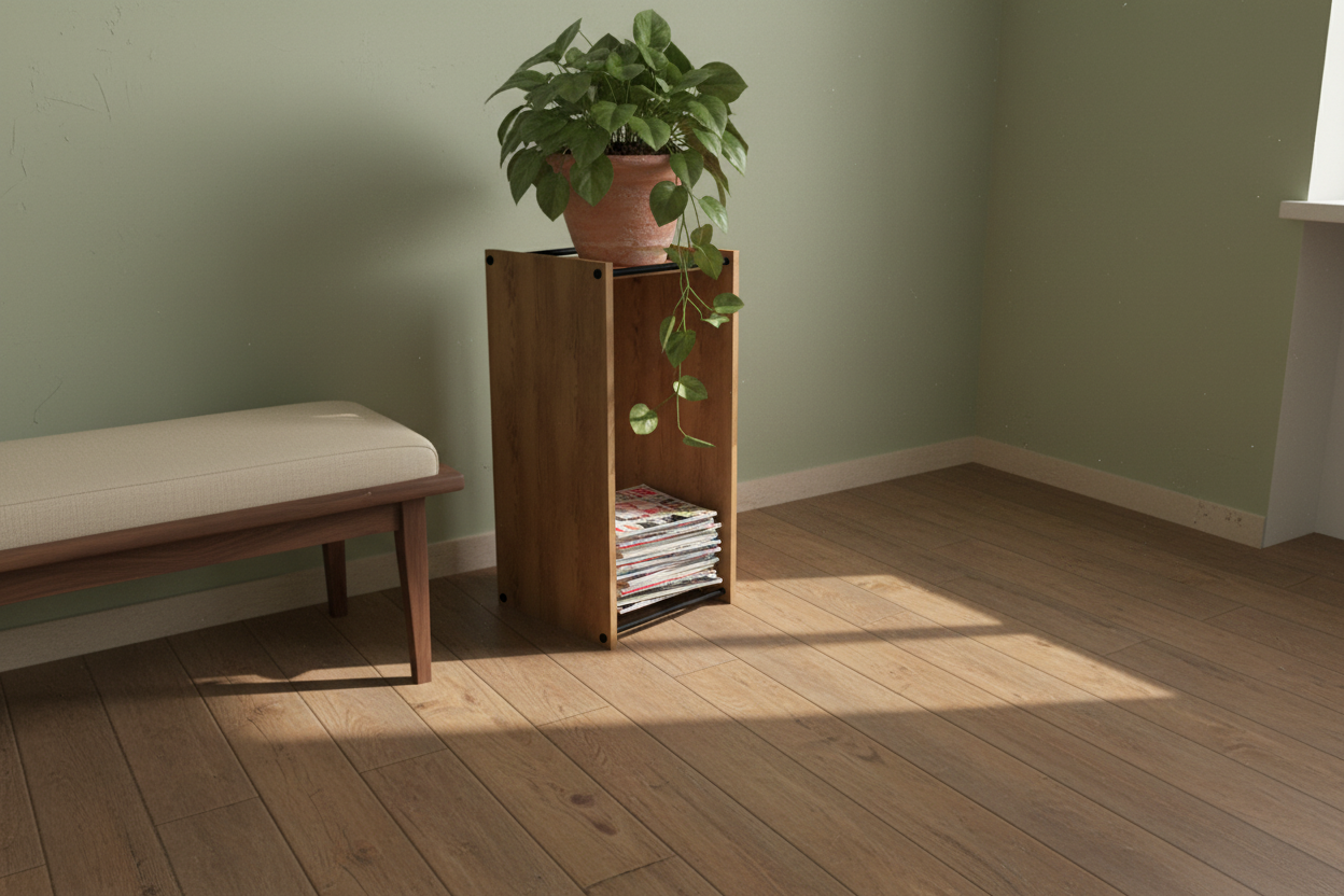 storage box for books, magazines or vinyl records, side table, plant stand, storage for blankets and pillows, toy box