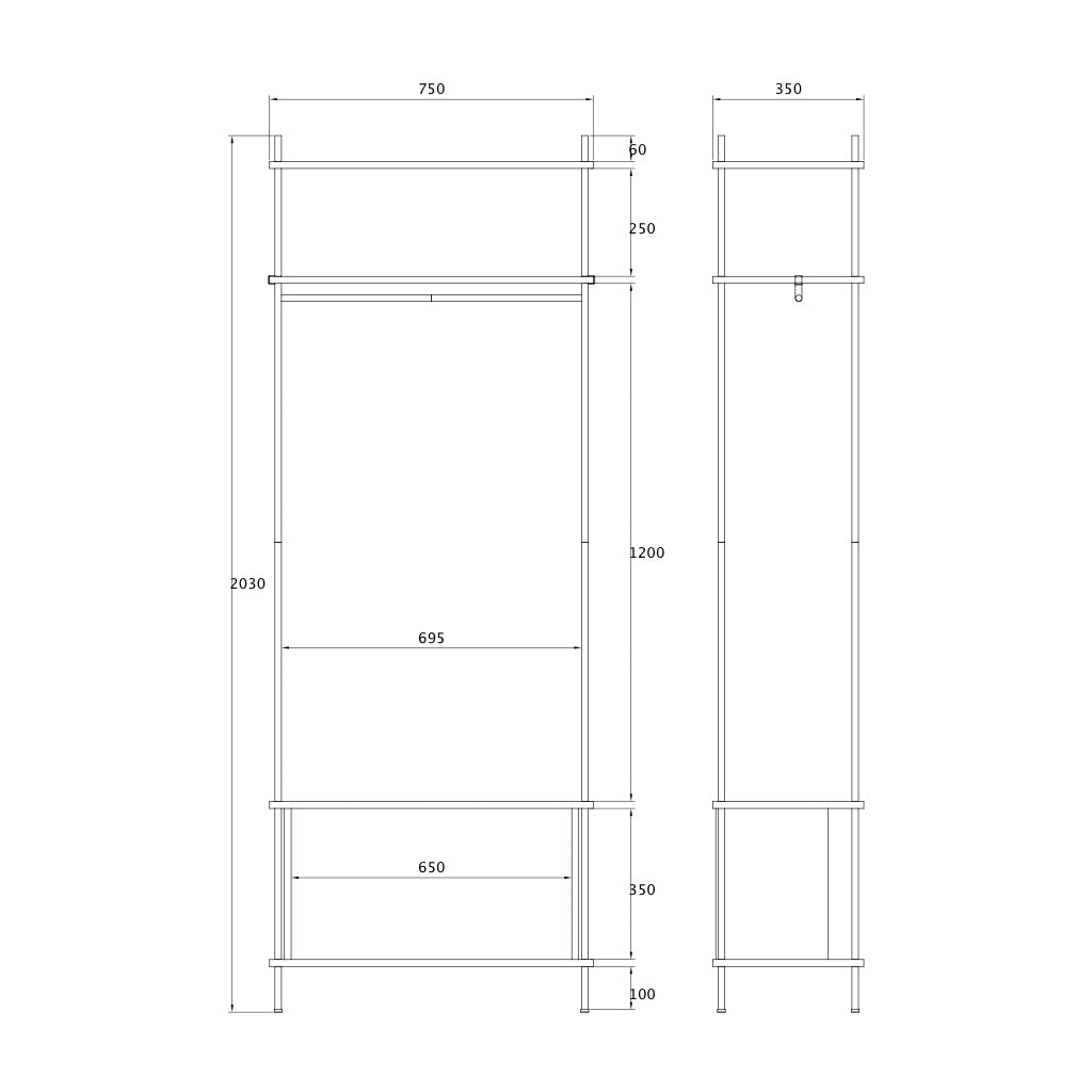 Height: 204 cm, Width: 75 cm, Depth: 35 cm, Weight: 18,2 kg